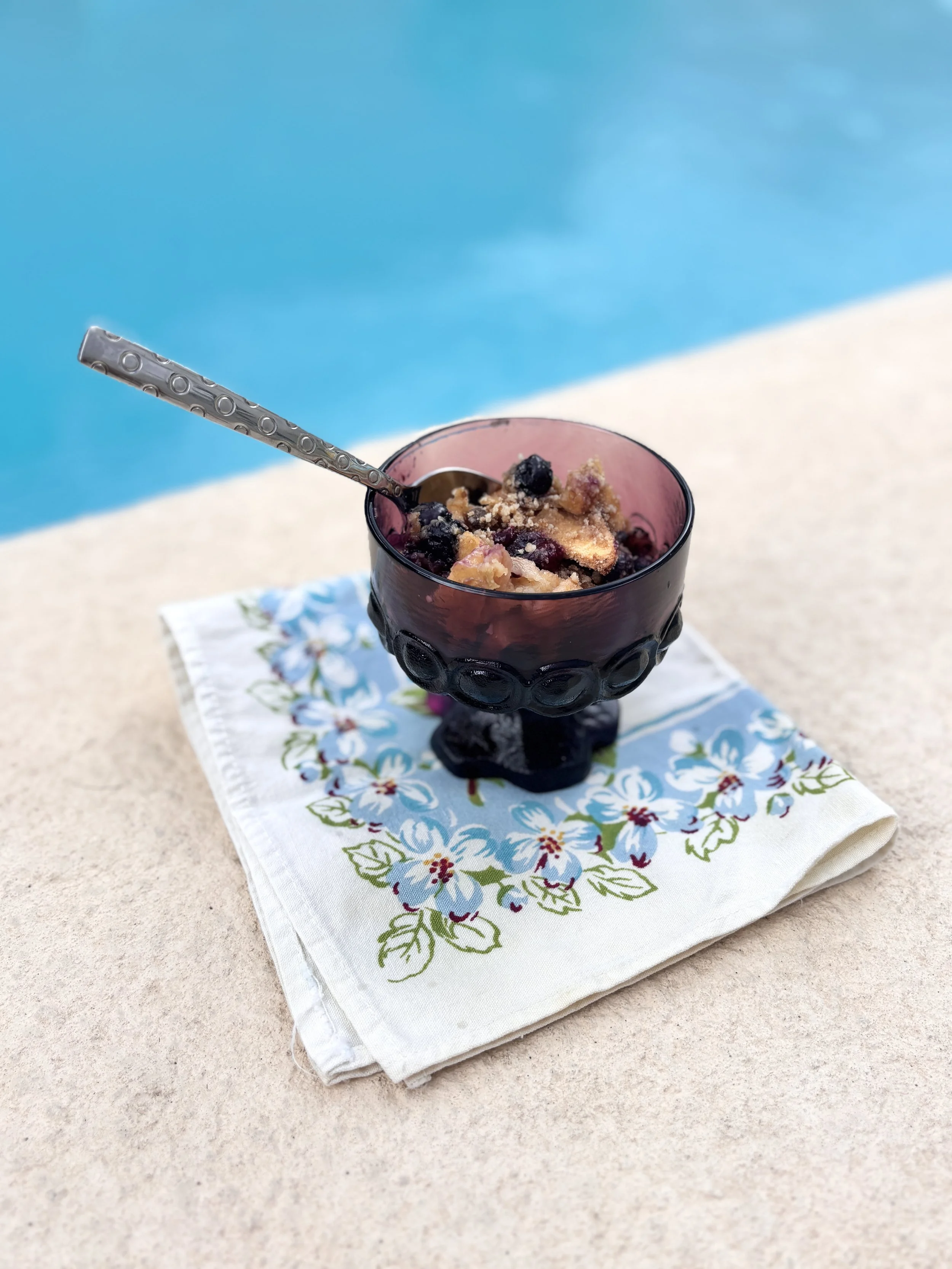 I don’t know what it takes to call something a “Jubilee,” however, I’ve decided this dessert deserves that honor. It’s my mom’s apple pie recipe without the crust (and with blueberries added). Just because the crust isn’t there doesn’t mean something isn’t delicious– and this is!